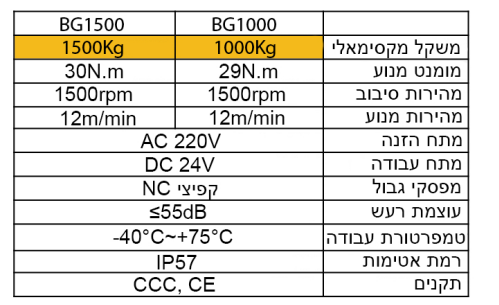 • מהירות סיבוב: 1500 rpm
