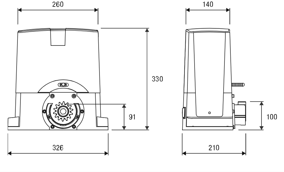 המנוע מגיע עם צלחת יסוד מוגברת (326×164.5×2 מ”מ), מרחק התקנה למנוע 301×75 מ”מ, 4 חורים Ø 8.5 מ”מ.